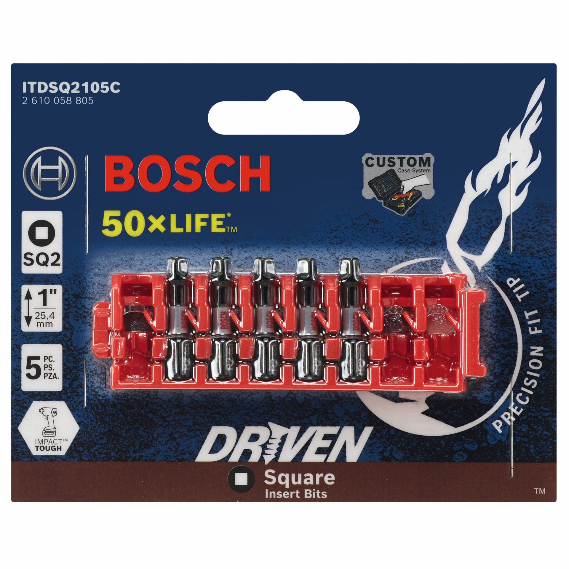 BOSCH ITDSQ2105C 5 pc. Driven 1 In. Impact Square #2 Insert Bits with Clip for Custom Case System
