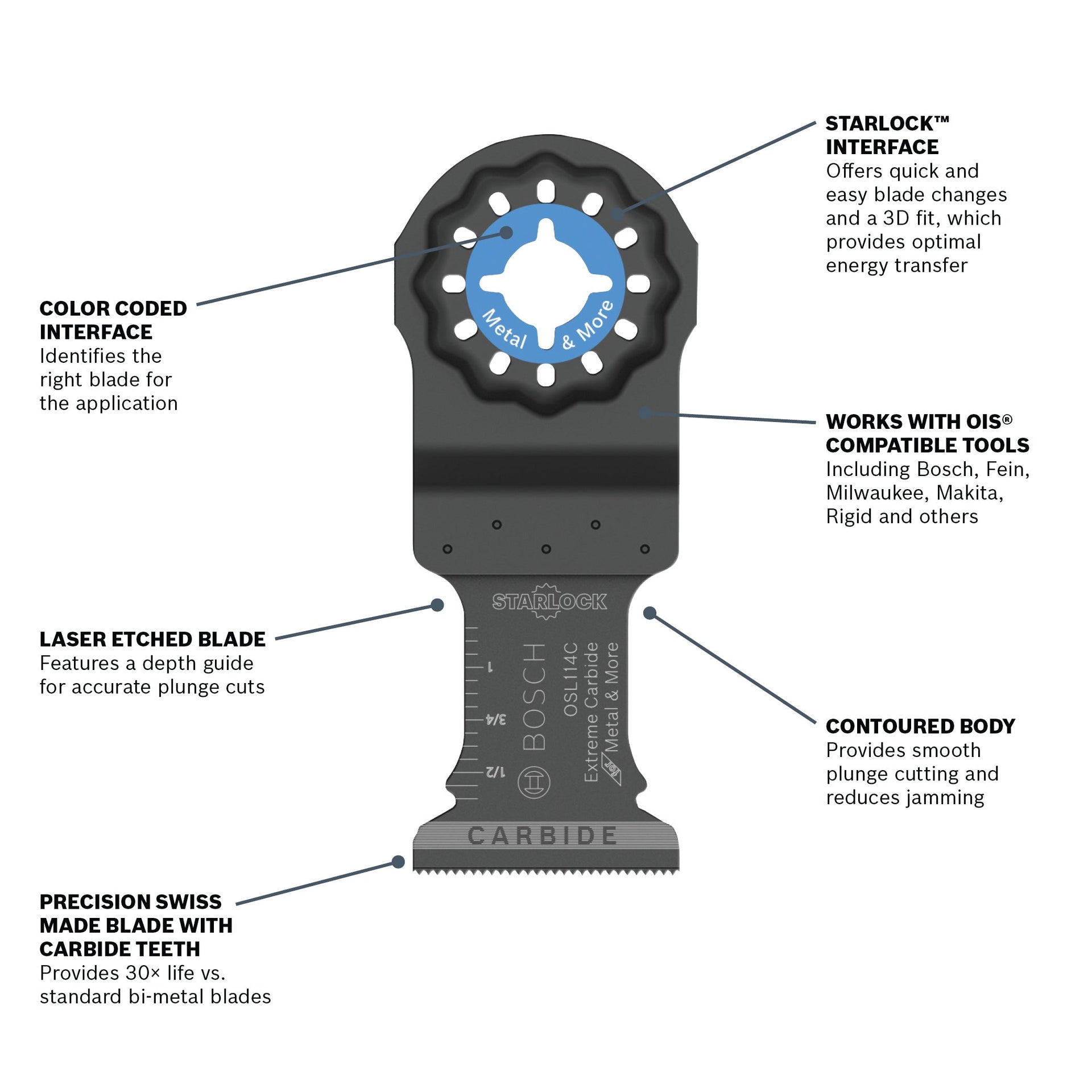 - Starlock® interface for professional performance, also works with OIS® compatible tools including Bosch, Fein, Milwaukee, Makita, Rigid, others