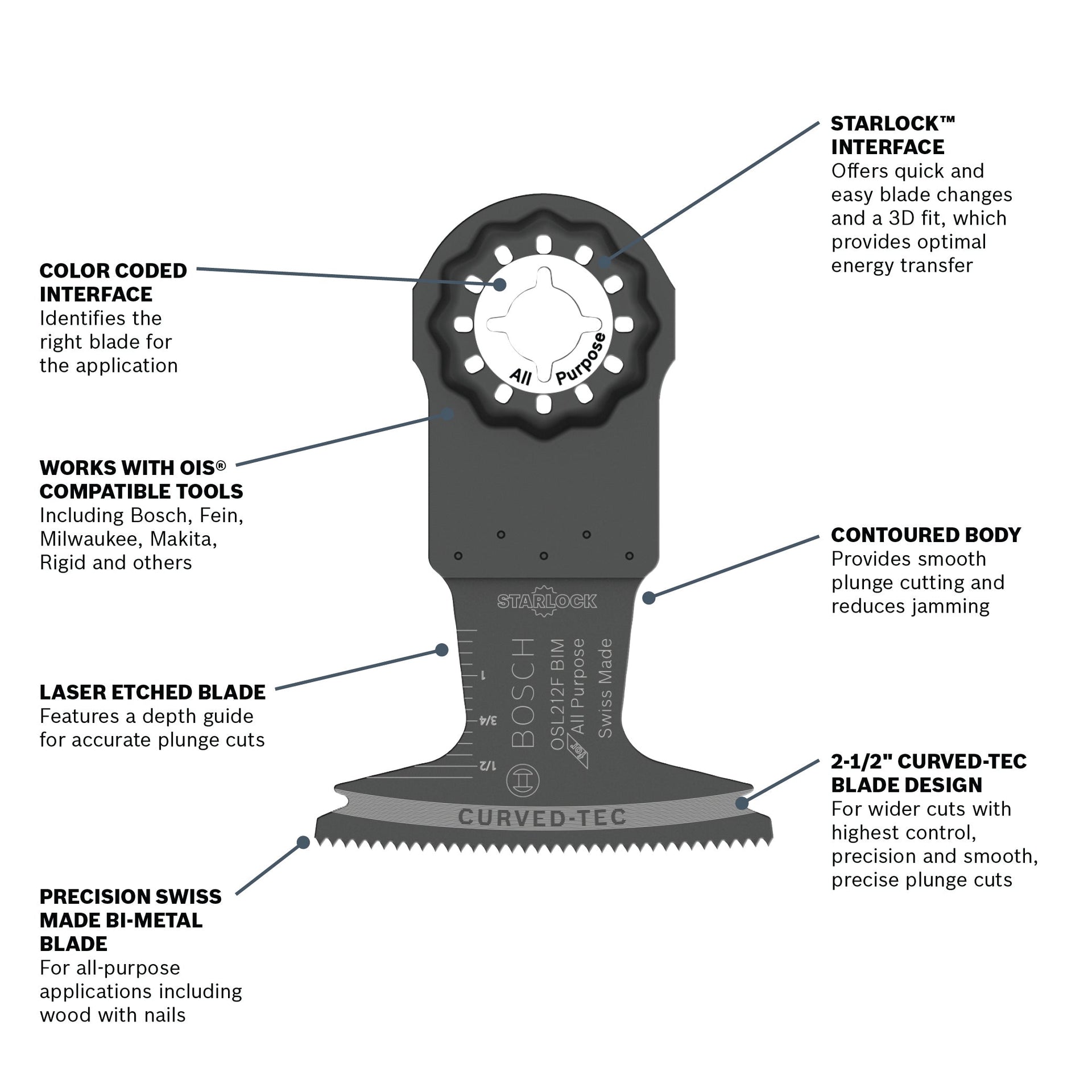 - Starlock® interface for professional performance, also works with OIS® compatible tools including Bosch, Fein, Milwaukee, Makita, Rigid, others