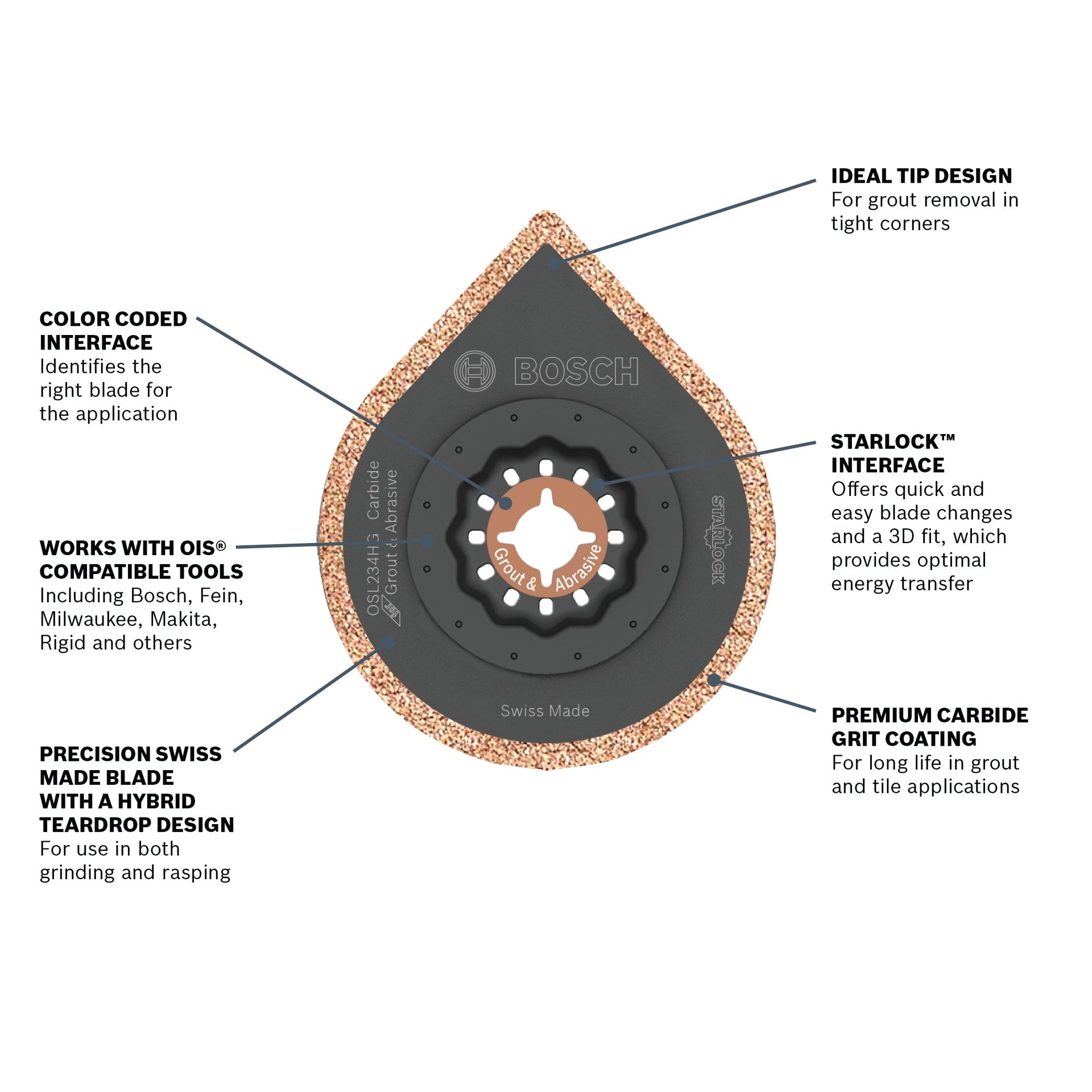 BOSCH OSL234HG 2-3/4 In. Starlock® Oscillating Multi Tool Hybrid Grout Blade