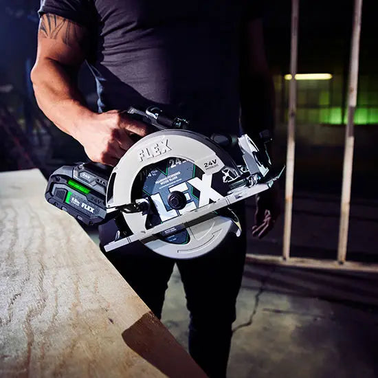 FLEX 7-1/4" 24T Carbide Circular Saw Blades cut with unrelenting speed and ultimate durability. This high-density blade is made with Active Speed Carbide for sharpness that lasts. Achieve optimum precision and accuracy in every rip with this blade's laser-cut form and ultra-thin kerf. Friction, heat, gumming, and corrosion stand no chance against this blade's anti-stick coating. Built-in anti-kickback and anti-vibration features increase safety and reduce fatigue. These tough, versatile blades are compatible with both sidewinder and worm drive style saws.