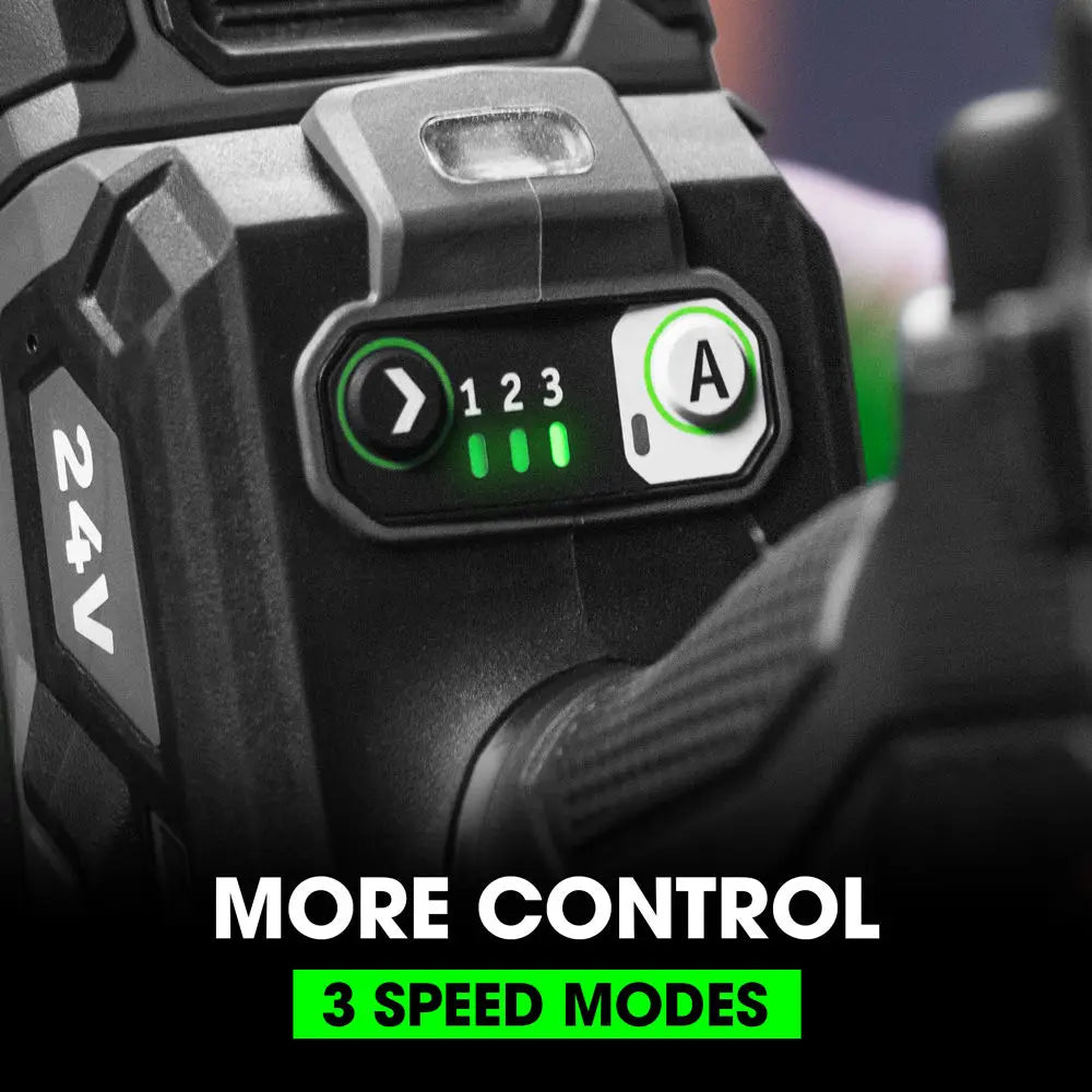 200% more power with 24V Stacked Lithium, 300% longer runtime with THERMA-TECH™+ heat management, 100% faster charging, 100% cross-compatible with all FLEX 24V tools and chargers