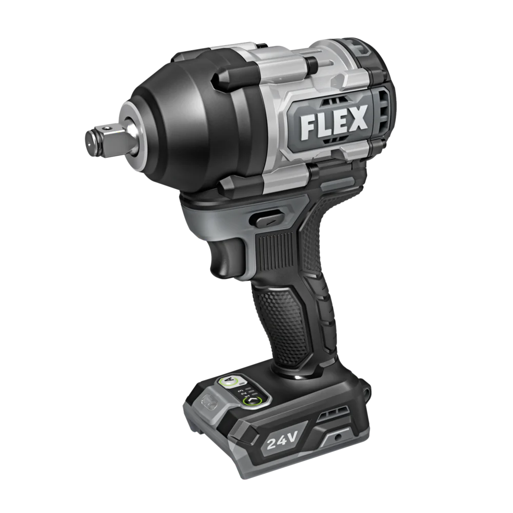 The FLEX 1/2” Mid-Torque Impact Wrench packs big power into a compact design for a lightweight, durable tool built to conquer hard-to-reach spaces. It delivers 600 foot-pounds of fastening torque and 750 foot-pounds of nut-busting torque for demanding jobs. When used for automotive applications, Bolt Auto Stop Mode prevents over-tightening, breaking, or stripping of lug nuts while Bolt Removal Mode stops the tool when it senses the lug nut is loosened. Vibration suppression isolates the ½-inch impact wrench and user from vibration for more comfortable extended use, and three speed modes plus a variable speed trigger allow easy control of RPMs to adapt to different materials. This cordless impact wrench dominates with the FLEX Stacked Lithium Advantage: unmatched battery power, runtime, and charging capability. The cordless impact wrench set includes the mid-torque impact wrench, a 3.5Ah Stacked Lithium battery, and 160W Fast Charger. It’s all protected by the FLEX Limited Lifetime Warranty when registered within 30 days of purchase at registermyFLEX.com through December 31, 2024.