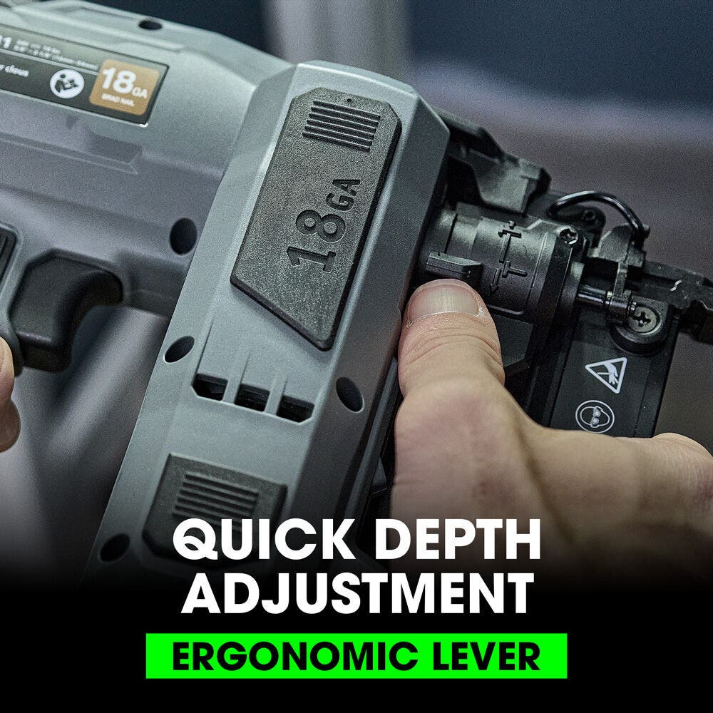 Drives up to 2,200 nails on a single charge with a 2.5Ah lithium battery (sold separately)