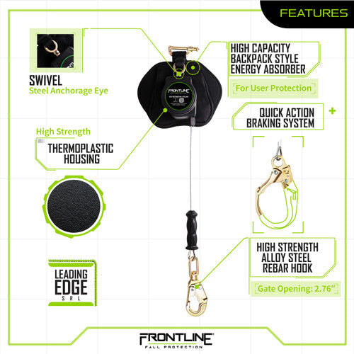 Frontline RPG081RLE Leading Edge Cable Single Leg 8' SRL with Steel Rebar Hook End