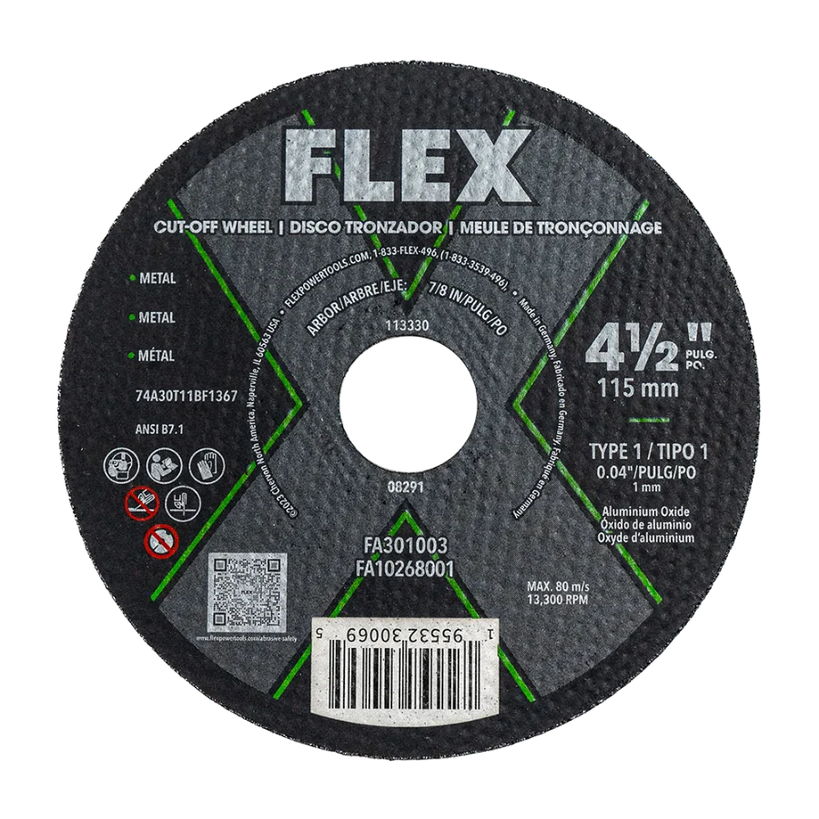 - FLEX FA301003 4.5" x 0.04" x 7/8" Cut -Off Disc Type 1