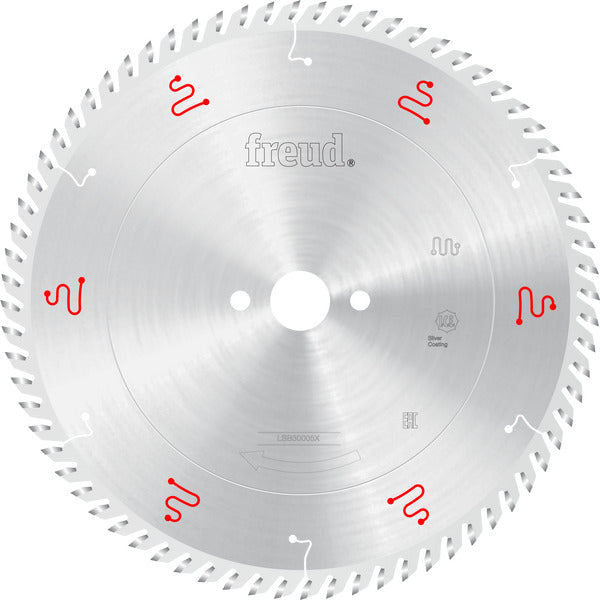 Freud’s innovative X-series of LSB Panel Blades (LSB-X) offers ground-breaking designs to provide superior performance, extremely precise cuts and virtually no-run out for up to 2X the cutting performance and cutting life of standard LSB Panel Blades. Freud’s specially formulated TiCo™ carbide along with Silver I.C.E. (Industrial Cooling Element) coating enables the blade to slice through materials, maximizing the blade’s cutting life and providing a superior quality finish. The Ultimate Precision Grinding Process provides the highest possible tolerance for precise, accurate cuts while the advanced Anti-Vibration Design combined with unmatched accuracy in saw blade flatness make this the quietest panel saw blade on the market.