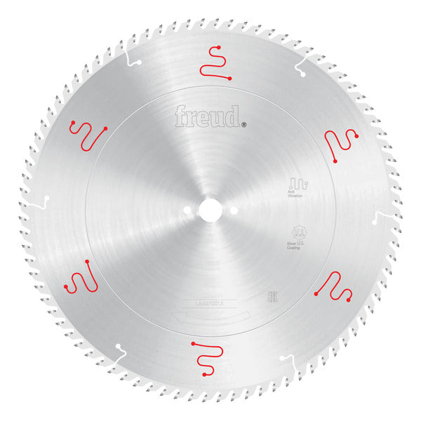 Freud’s innovative X-series of LSB Panel Blades (LSB-X) offers ground-breaking designs to provide superior performance, extremely precise cuts and virtually no-run out for up to 2X the cutting performance and cutting life of standard LSB Panel Blades. Freud’s specially formulated TiCo™ carbide along with Silver I.C.E. (Industrial Cooling Element) coating enables the blade to slice through materials, maximizing the blade’s cutting life and providing a superior quality finish. The Ultimate Precision Grinding Process provides the highest possible tolerance for precise, accurate cuts while the advanced Anti-Vibration Design combined with unmatched accuracy in saw blade flatness make this the quietest panel saw blade on the market.