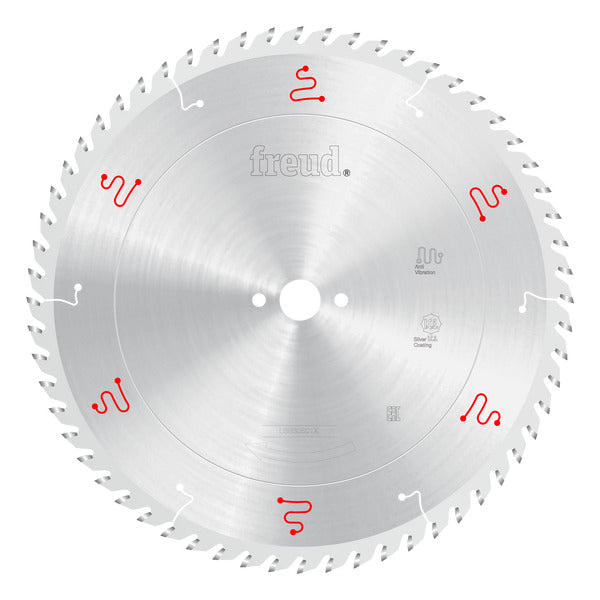 Freud’s innovative X-series of LSB Panel Blades (LSB-X) offers ground-breaking designs to provide superior performance, extremely precise cuts and virtually no-run out for up to 2X the cutting performance and cutting life of standard LSB Panel Blades. Freud’s specially formulated TiCo™ carbide along with Silver I.C.E. (Industrial Cooling Element) coating enables the blade to slice through materials, maximizing the blade’s cutting life and providing a superior quality finish. The Ultimate Precision Grinding Process provides the highest possible tolerance for precise, accurate cuts while the advanced Anti-Vibration Design combined with unmatched accuracy in saw blade flatness make this the quietest panel saw blade on the market.