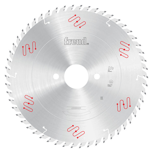 Freud’s innovative X-series of LSB Panel Blades (LSB-X) offers ground-breaking designs to provide superior performance, extremely precise cuts and virtually no-run out for up to 2X the cutting performance and cutting life of standard LSB Panel Blades. Freud’s specially formulated TiCo™ carbide along with Silver I.C.E. (Industrial Cooling Element) coating enables the blade to slice through materials, maximizing the blade’s cutting life and providing a superior quality finish. The Ultimate Precision Grinding Process provides the highest possible tolerance for precise, accurate cuts while the advanced Anti-Vibration Design combined with unmatched accuracy in saw blade flatness make this the quietest panel saw blade on the market.