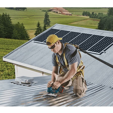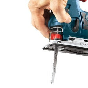 The Bosch JSH180 Lithium-ion 18V jig saw is compact and lightweight. Its T-shank blade change system allows the user to insert the blade just without the need for any tools, and when it’s time for a blade change, a turn of knob ejects the blade, so there is no need to touch a hot blade. This jig saw also features an always-on blower and integrated LED light for enhanced visibility in the cutting area. The sophisticated electronics package includes Electronic Motor Protection (EMP), which protects the motor against overload and ensures a long lifetime and the Electronic Cell Protection (ECP) protects the battery (sold separately) against overload, overheating and deep discharge. Bosch 18V Lithium-ion batteries feature the CoolPack design with a special heat-conductive housing and ribbing that cools them by drawing out heat out, providing battery life of up to 100% over Lithium-ion batteries without the CoolPack design.