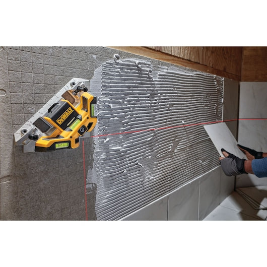 This 33 ft. laser square is great for tiling with its 3 integrated mounting pins. This durable laser offers an IP54 debris/water resistant rating and has an aluminum base. Its two red beams achieve a 90 degree angle, great for a wide range of uses.