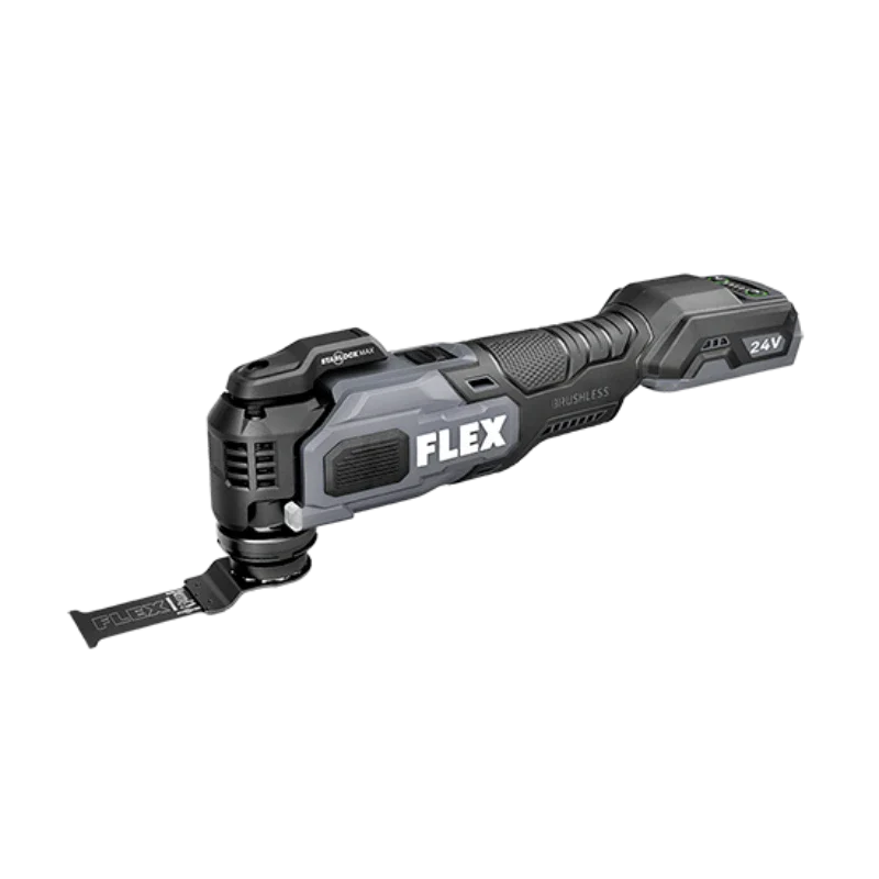 The FLEX 24V Brushless Oscillating Multi-Tool channels up to 20,000 OPM, to cut, trim, plunge, sand, grind, and scrape with confidence. Maintain control with advanced vibration suppression. The 3D Starlock connection, maximizes the exchange between motor and blade for ultimate oscillating efficiency while making blade changes super easy. Built-in LED lighting also ensures complete visibility while you work, even in tough conditions. All protected by a 5-year, end-to-end warranty.