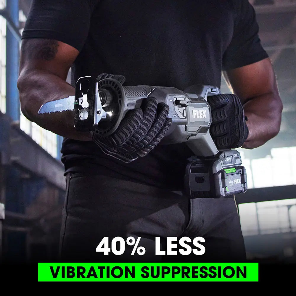 No demo is too tough for the FLEX 24V Brushless Reciprocating Saw. This saw features fast, orbital cutting action and delivers more cuts per charge. Reduced fatigue with vibration suppression. Switch blades on-the-fly with quick and easy, keyless blade eject. Built-in LED lighting illuminates your site. All this comes with the FLEX Advantage of unmatched 24V battery power, runtime, and faster charging, backed by a 5-year end-to-end warranty.