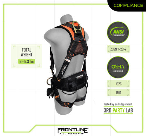 Frontline's Combat™ Series harness was developed to deliver performance, durability and reliability for workers across all industries. The Combat™ Series harness is the complete go to solution when looking for a full body harness. The harness is lightweight but built rigid to withstand the harshest conditions, while also featuring built in suspension trauma straps for added safety in case user is subject to a fall. With Frontline, users working at heights can work with confidence, as we are always building to prioritize with worker safety!
