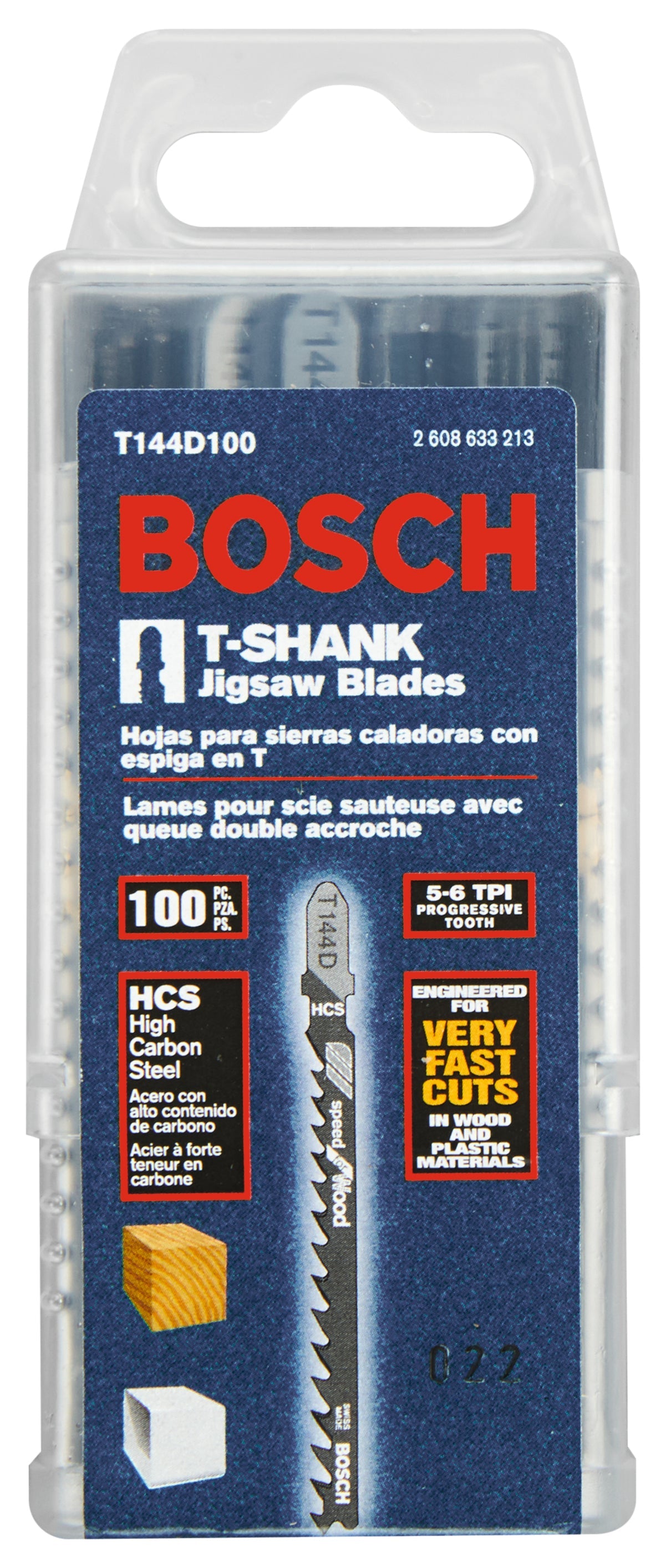 BOSCH T144D 5pc. 4 In. 6 TPI Speed for Wood T-Shank Jig Saw Blades