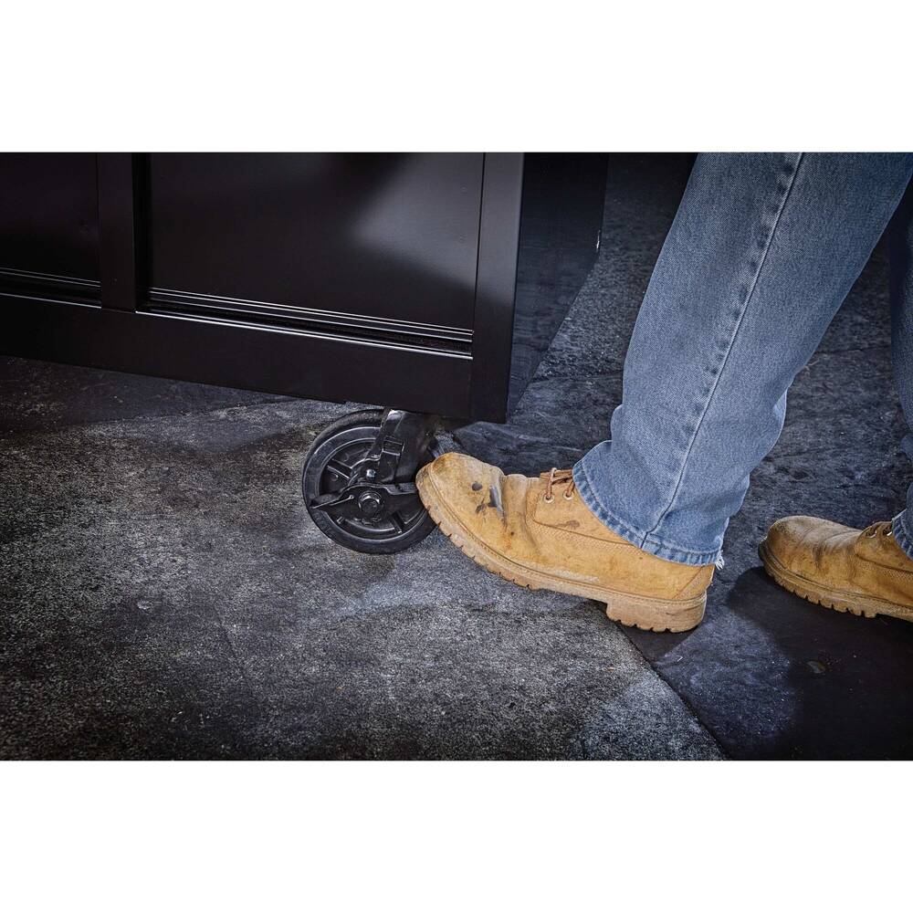 This 26-inch wide 6-Drawer Rolling Tool Cabinet is constructed of double-wall steel for strength and durability. It has six 100-pound load capacity drawers with soft close latching for smooth and quiet operation. It also has a heavy-duty keyed internal locking system to safeguard tools. Conveniently charge your power tools, batteries, and electronics from the side of the cabinet. Its load rating is 1,500 pounds with reinforced mounting channels and it has four 5-inch x 2-inch casters, two of which lock and swivel. A full-grip tubular side handle with a comfortable black overmold is included for ease of mobility. Also included are six DEWALT embossed drawer liners and one DEWALT embossed top mat to help protect the cabinet surface. Recommended with this unit is our 700 Series 26-inch wide 6-Drawer Tool Chest (DWST22644), sold separately. Look no further than our Metal Tool Storage line for your tool storage and organization needs. Choose from a variety of sizes in top tool chests and rolling tool cabinets, all of which are made of 18-20 gauge steel. All units have an 18-inch depth to fit our mechanic tools sets, and other hand tools and accessories.