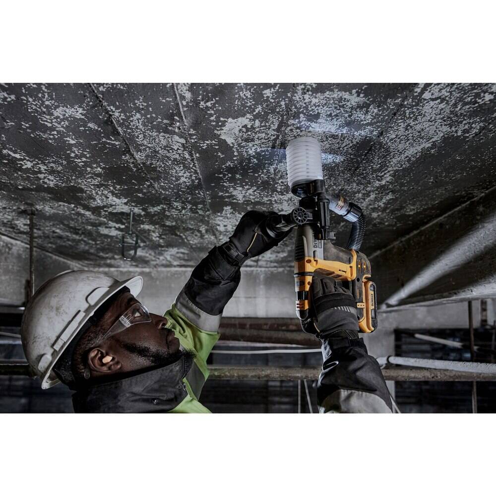 Tackle demanding jobs with this high-performance ATOMIC 20V MAX* 5/8 in. Brushless Cordless SDS Plus Rotary Hammer. The DEWALT brushless motor and durable German-engineered mechanism deliver 1.4 Joules of impact energy. The lightweight and compact design makes this tool ideal for rod hanging, concrete forming, cable tray and strut mounting, clip and bracket mounting, and railing mounting. It is part of the PERFORM and PROTECT™ product line, integrated with the SHOCKS ACTIVE VIBRATION CONTROL® System and becomes OSHA Table 1 Compliant when used with the DWH200D shroud and DWH161D1 dust extractor. Battery and charger sold separately.