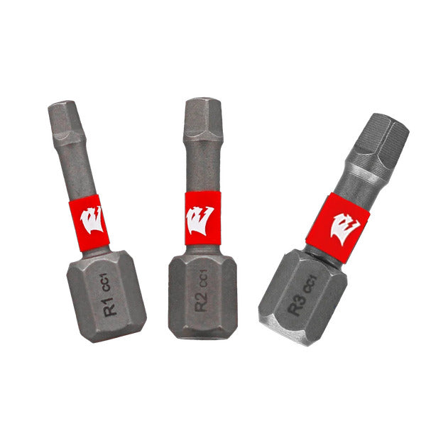 Assorted pack includes three Square drive bits: #1, #2 and #3