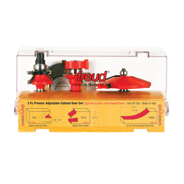 Freud 008925087595 3 Piece Premier Adjustable Cabinet Bit Set,  ogee & cove profile