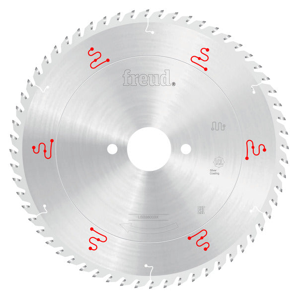 Freud’s innovative X-series of LSB Panel Blades (LSB-X) offers ground-breaking designs to provide superior performance, extremely precise cuts and virtually no-run out for up to 2X the cutting performance and cutting life of standard LSB Panel Blades. Freud’s specially formulated TiCo™ carbide along with Silver I.C.E. (Industrial Cooling Element) coating enables the blade to slice through materials, maximizing the blade’s cutting life and providing a superior quality finish. The Ultimate Precision Grinding Process provides the highest possible tolerance for precise, accurate cuts while the advanced Anti-Vibration Design combined with unmatched accuracy in saw blade flatness make this the quietest panel saw blade on the market.